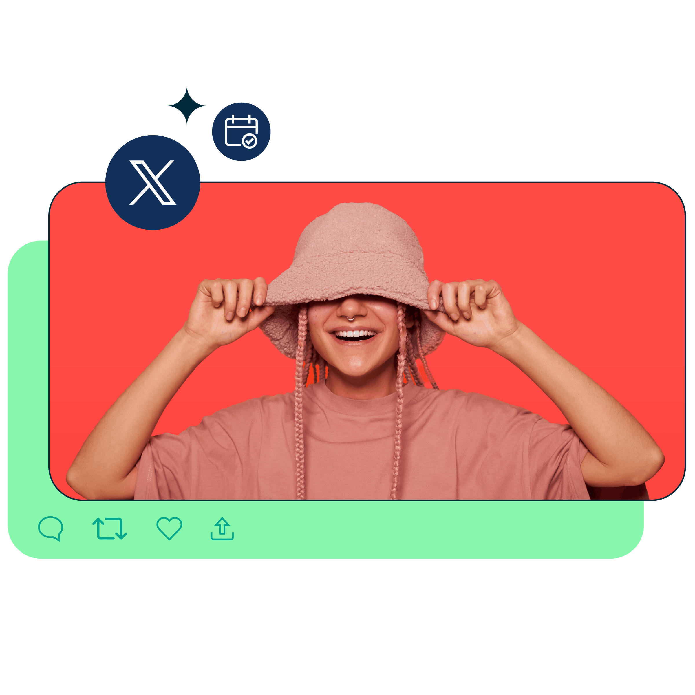 Twitter post with sunglasses photo and scheduling pop ups